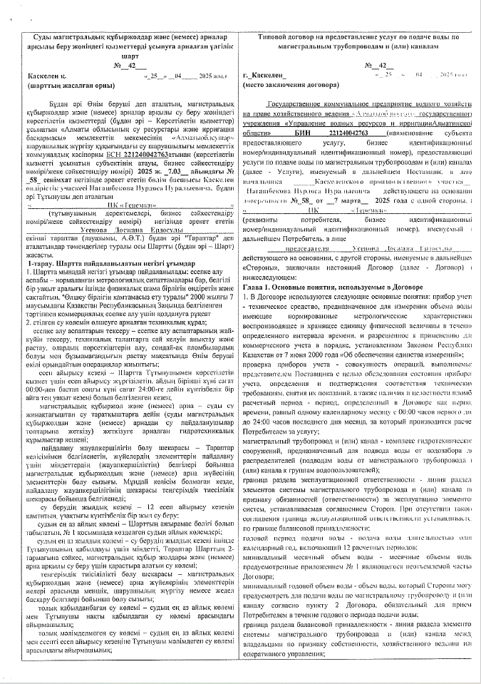 Договор — Поливная вода